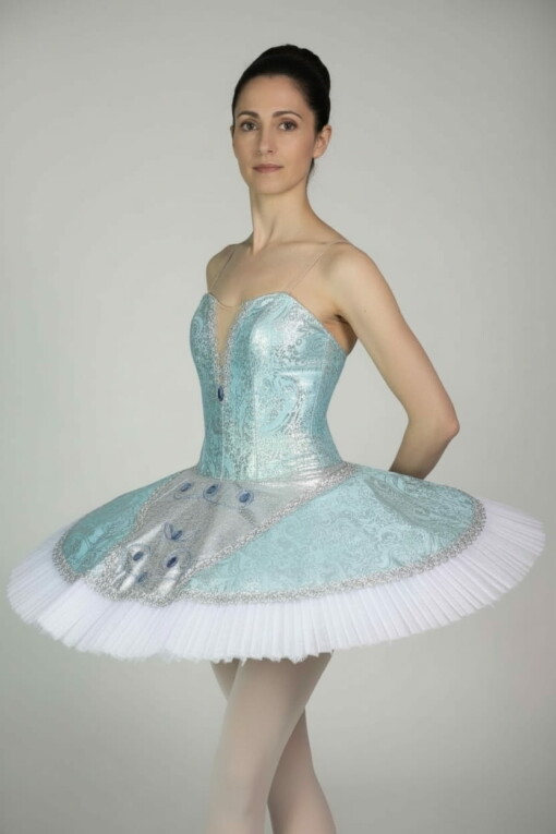 Un costume composé d’un bas de tutu professionnel avec un bustier en lamé en taille S