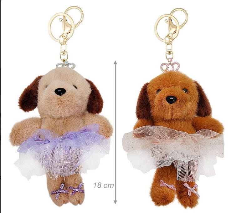 Porte clef chien danseuse de couleur différente de la marque Giradi. Petite peluche très jolie de 18 cm avec une couronne de strass.
